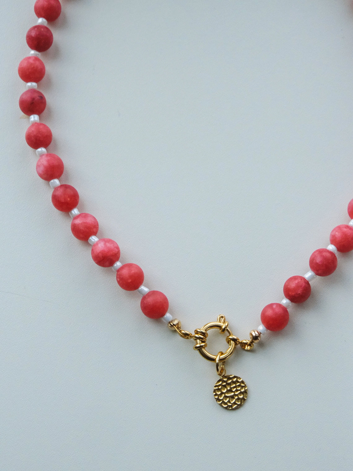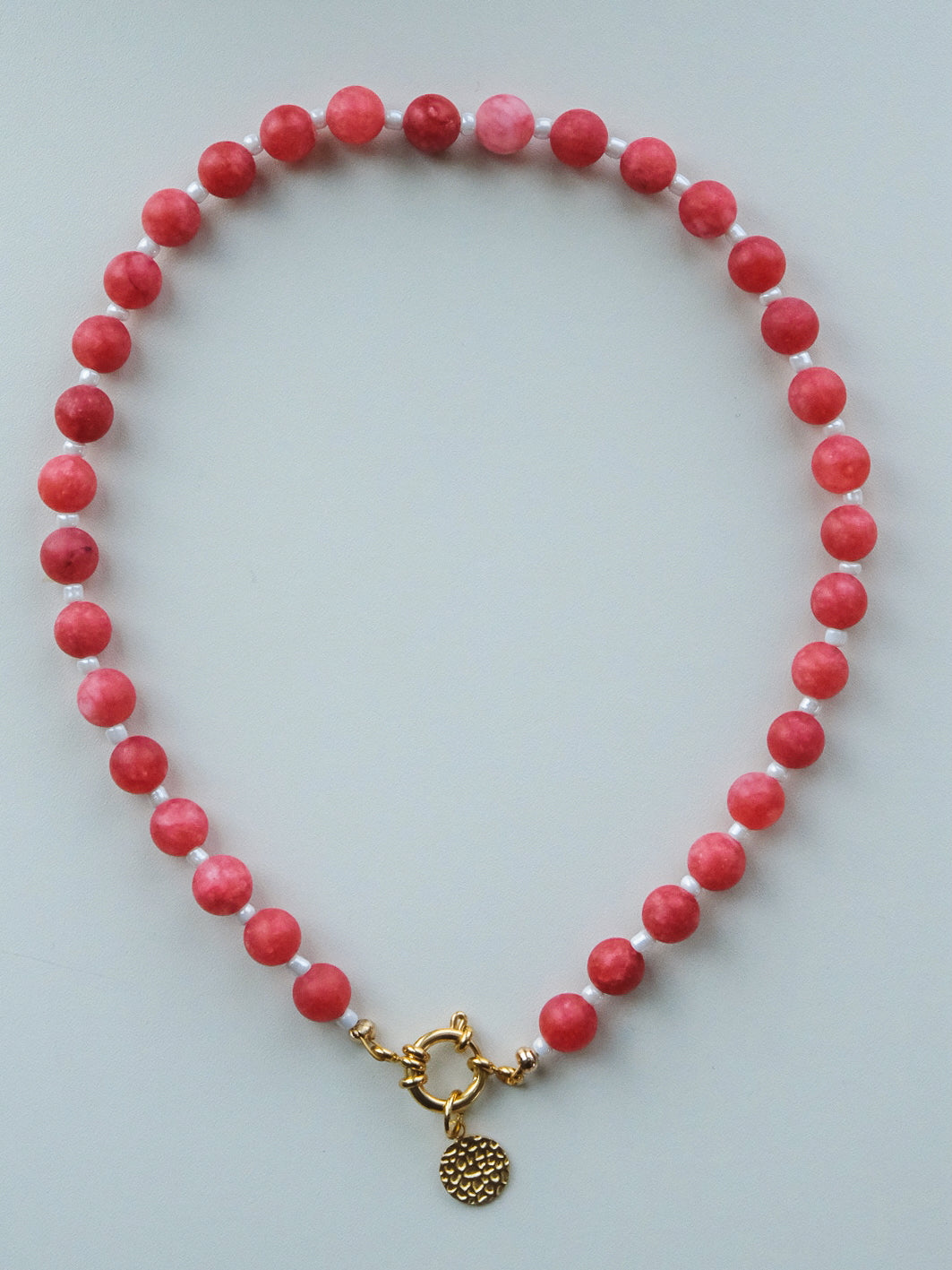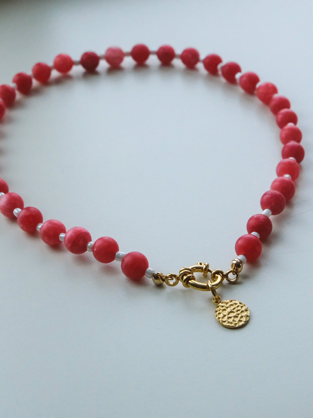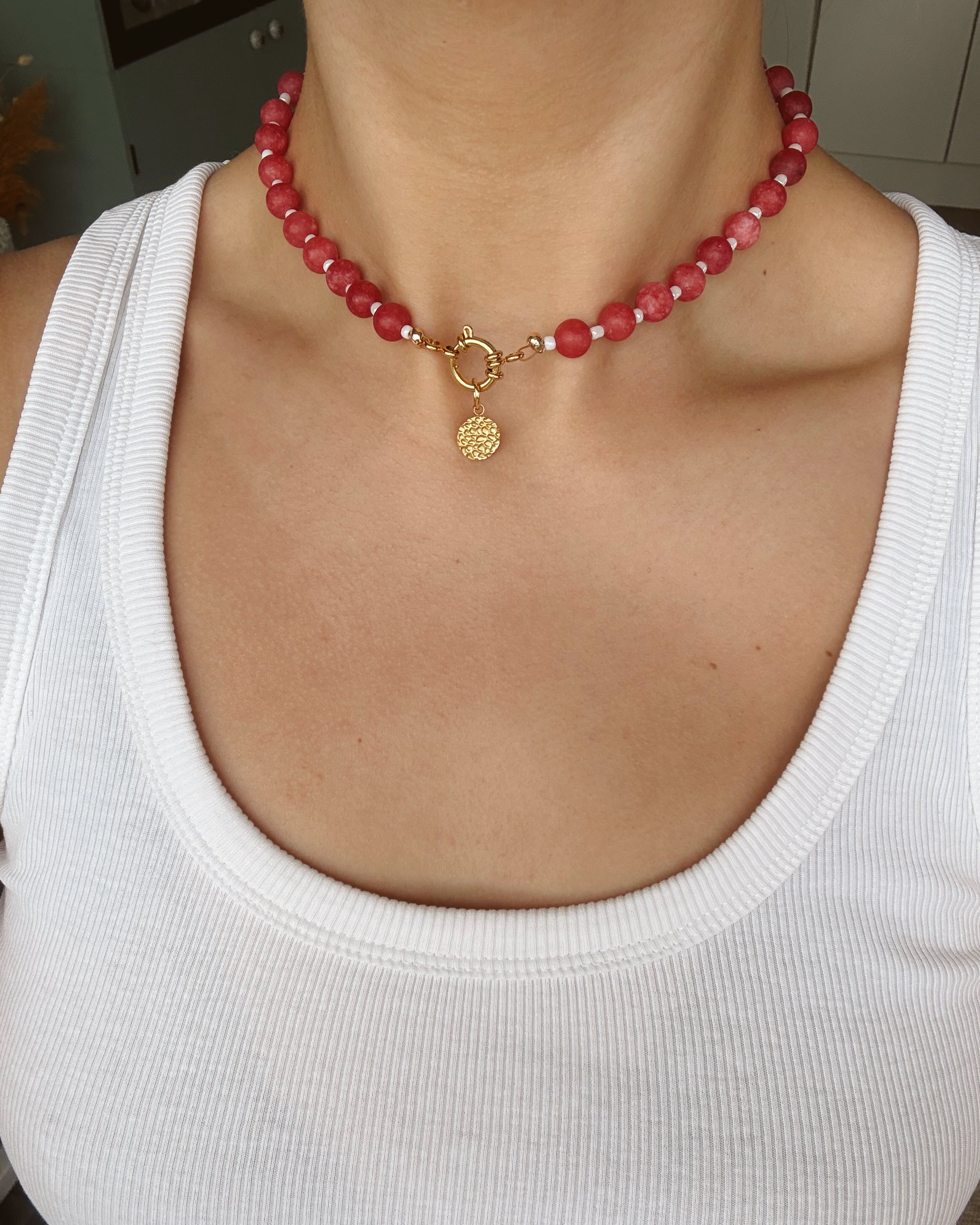Golden Charm Ketting - Natuursteen Wineberry Red
