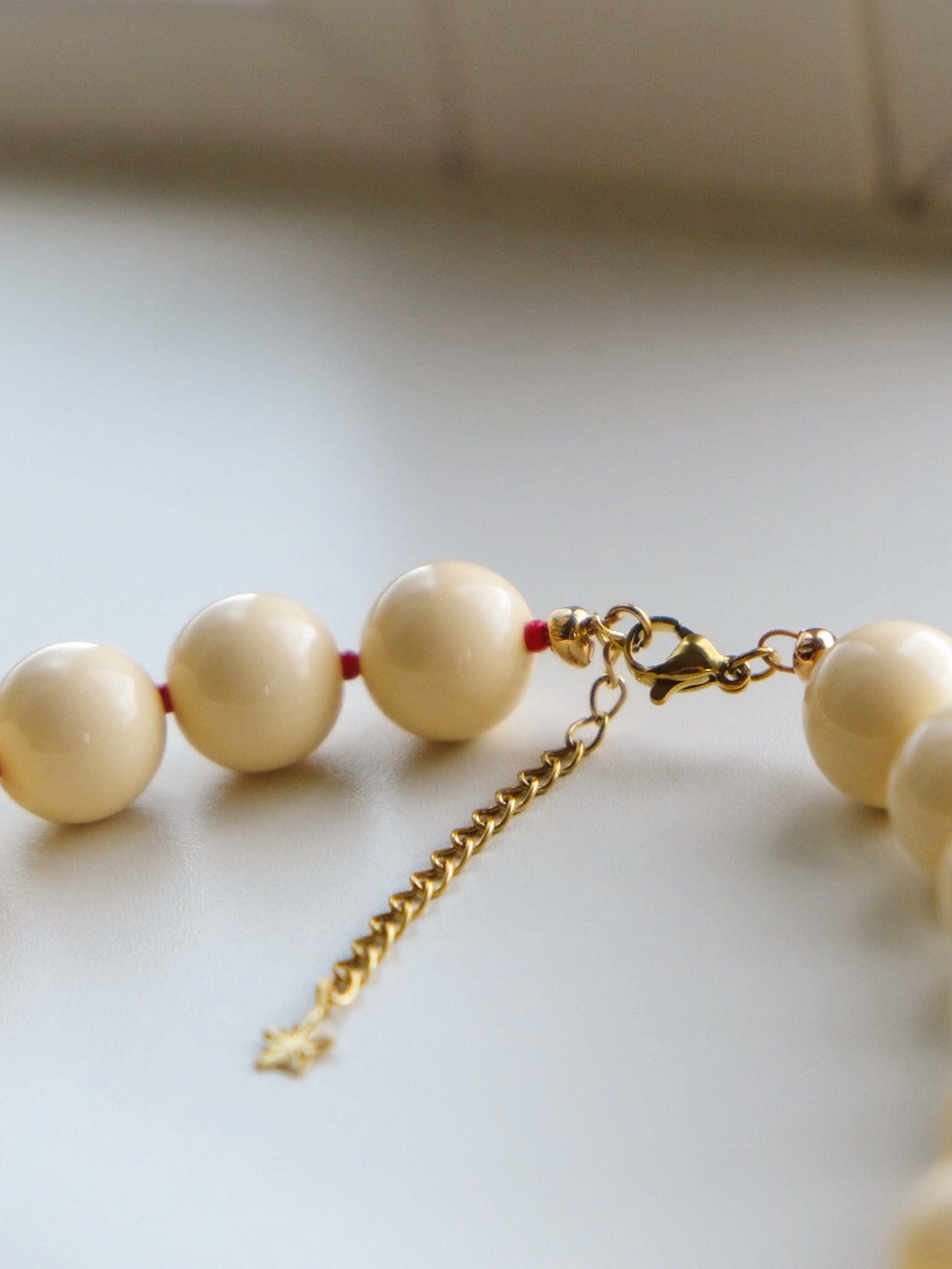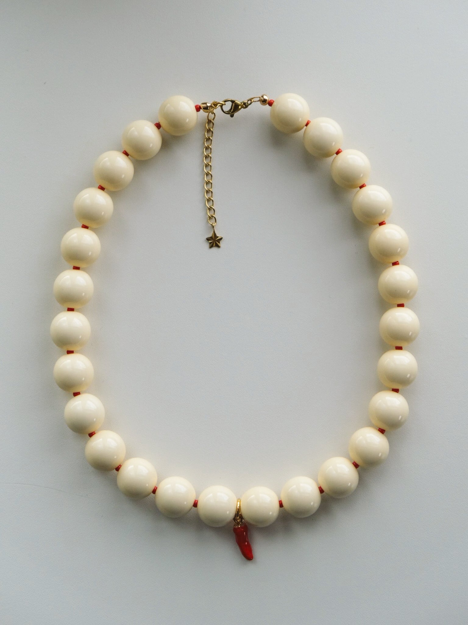 Handgemaakte ketting met kralen, afgewerkt met een gouden hanger. Gemaakt van RVS/stainless steel, waardoor de ketting niet verkleurt.