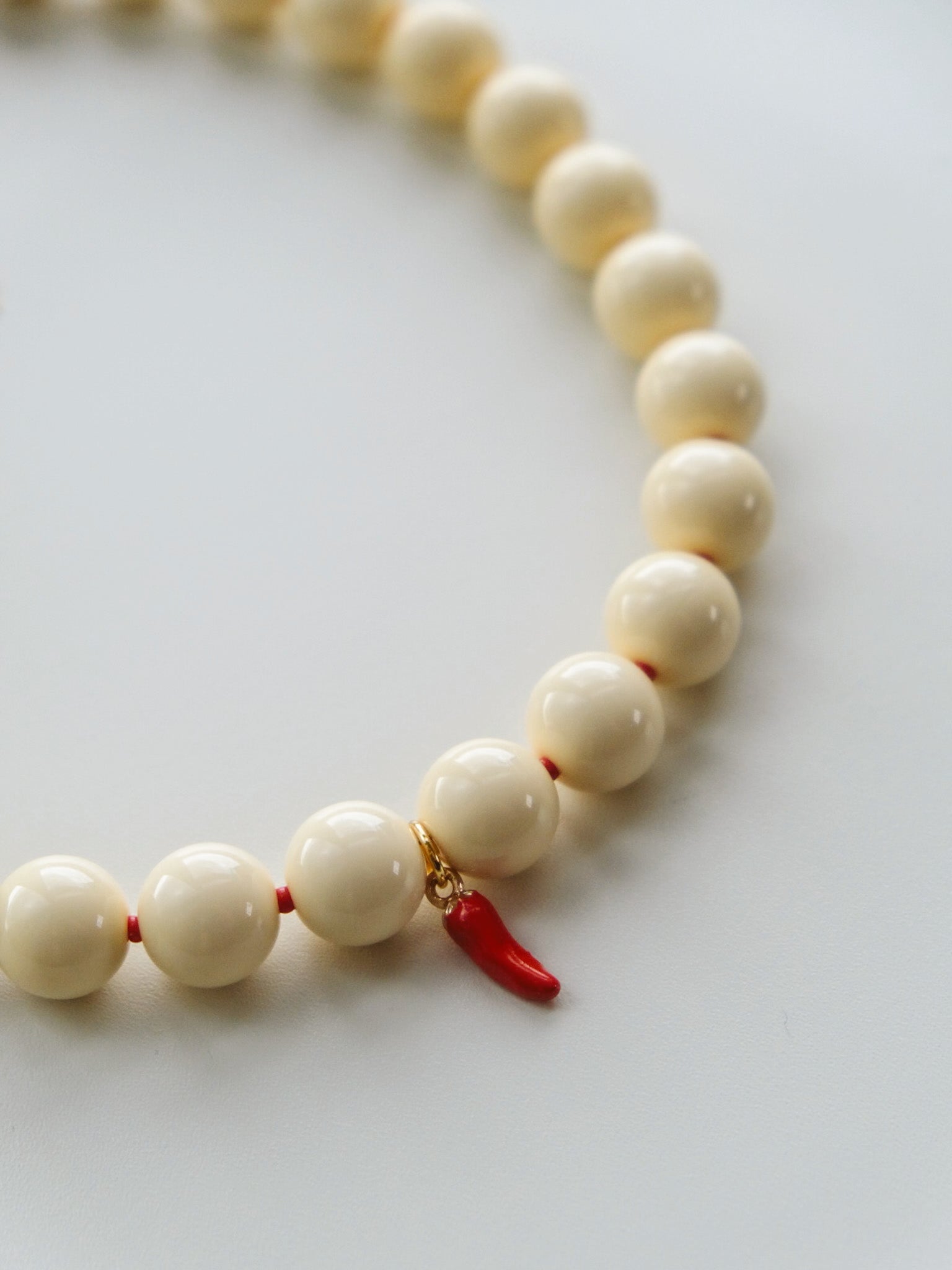 Om je ketting zo lang mogelijk mooi te houden, raden we aan om voorzichtig te zijn met het aanbrengen van parfum of crèmes vlakbij het sieraad. Door contact met deze producten kunnen sommige onderdelen licht afgeven. Vooral bij lichte kleding is het goed om hierop te letten. Even laten drogen voordat je je ketting omdoet is vaak al genoeg.
