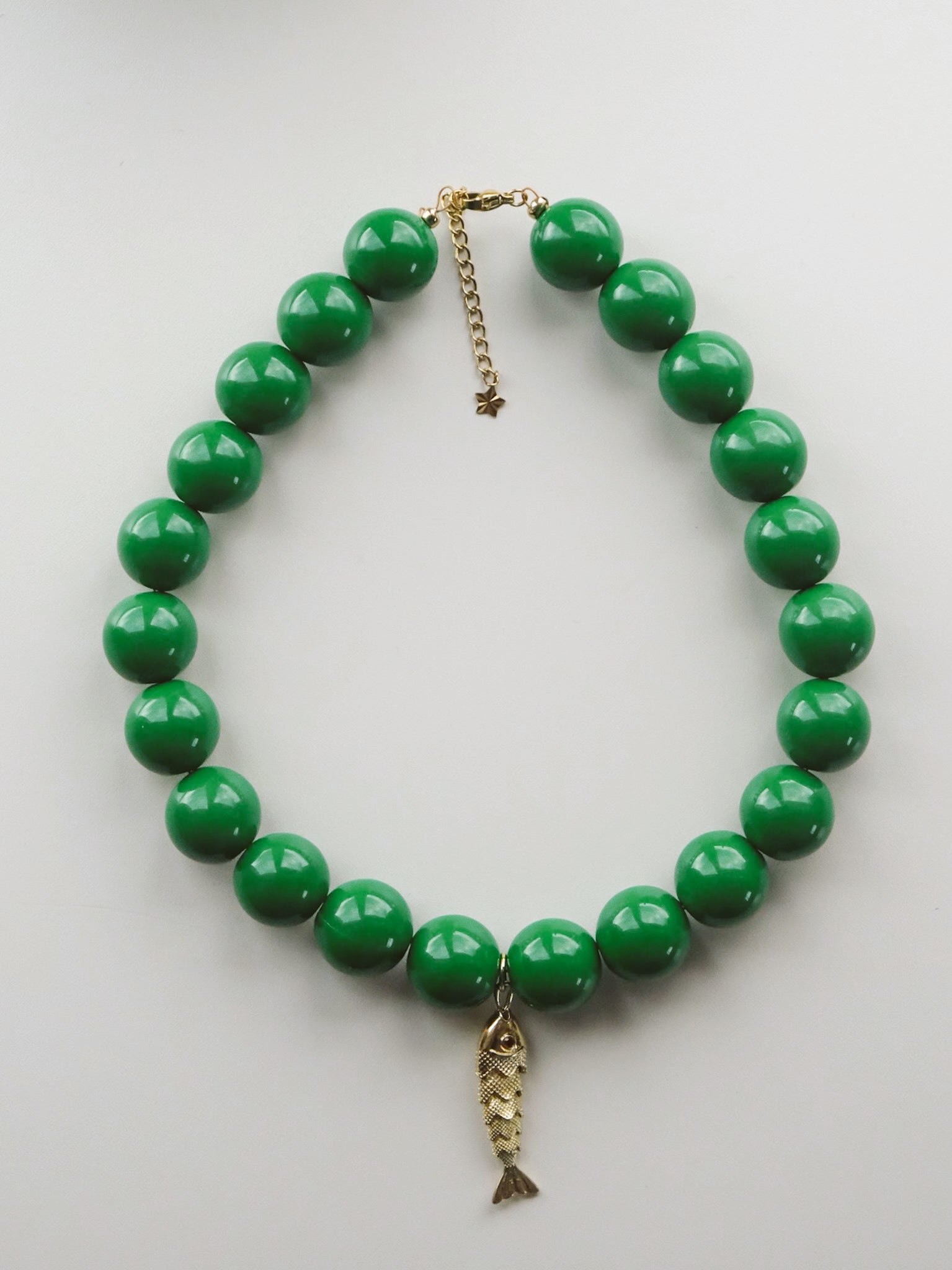 Handgemaakte ketting met kralen, afgewerkt met een gouden hanger. Gemaakt van RVS/stainless steel, waardoor de ketting niet verkleurt.