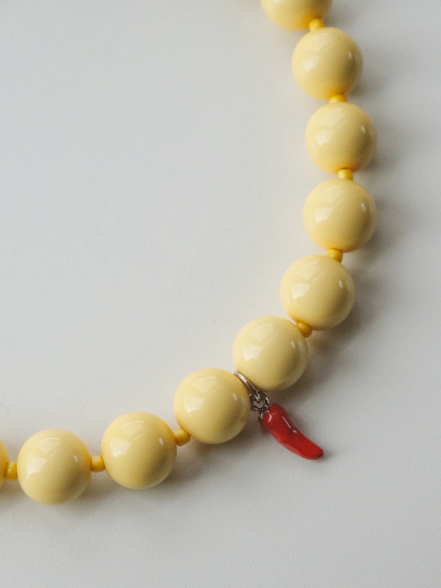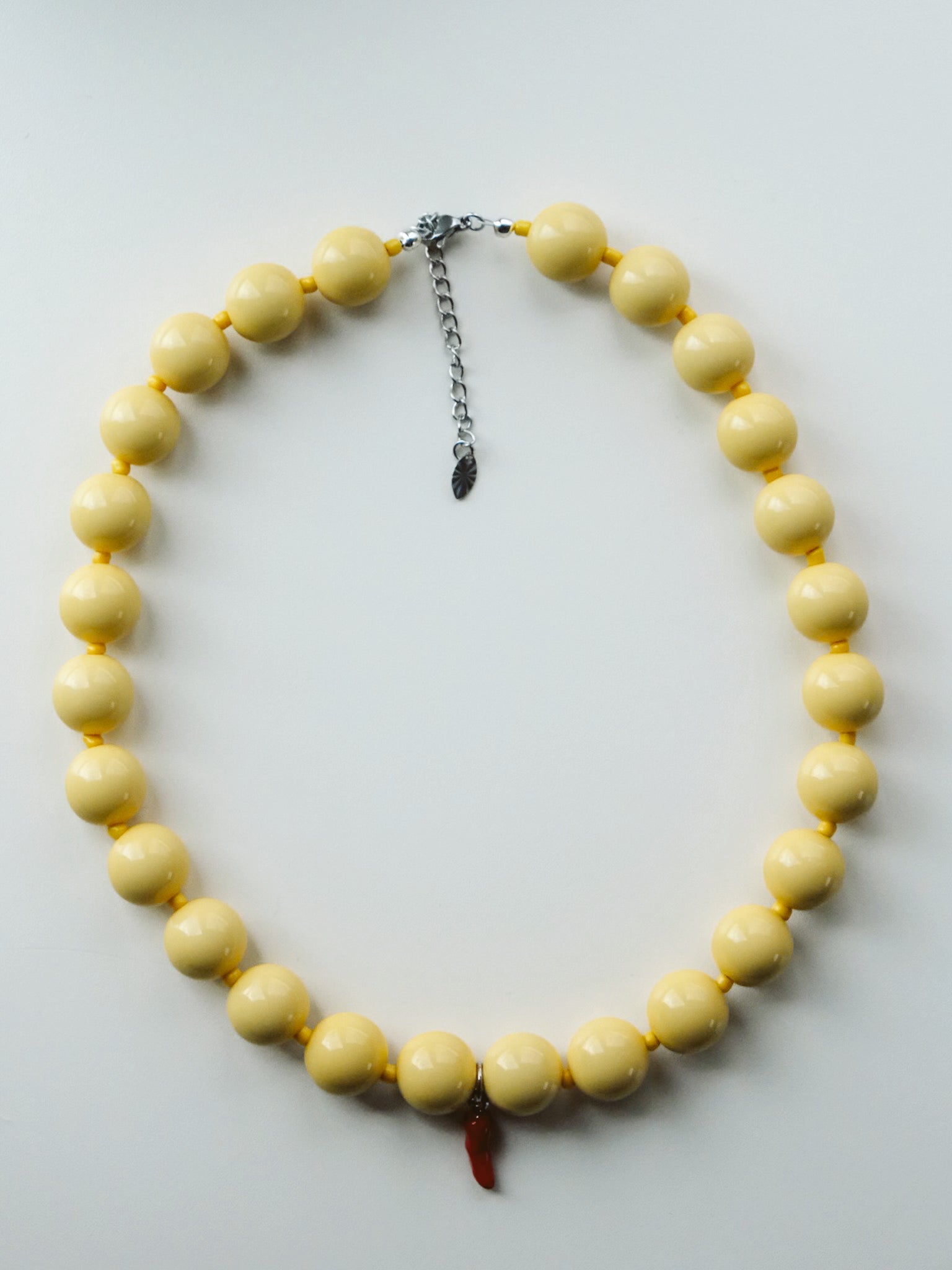 Handgemaakte ketting met kralen, afgewerkt met een zilveren hanger. Gemaakt van RVS/stainless steel, waardoor de ketting niet verkleurt.