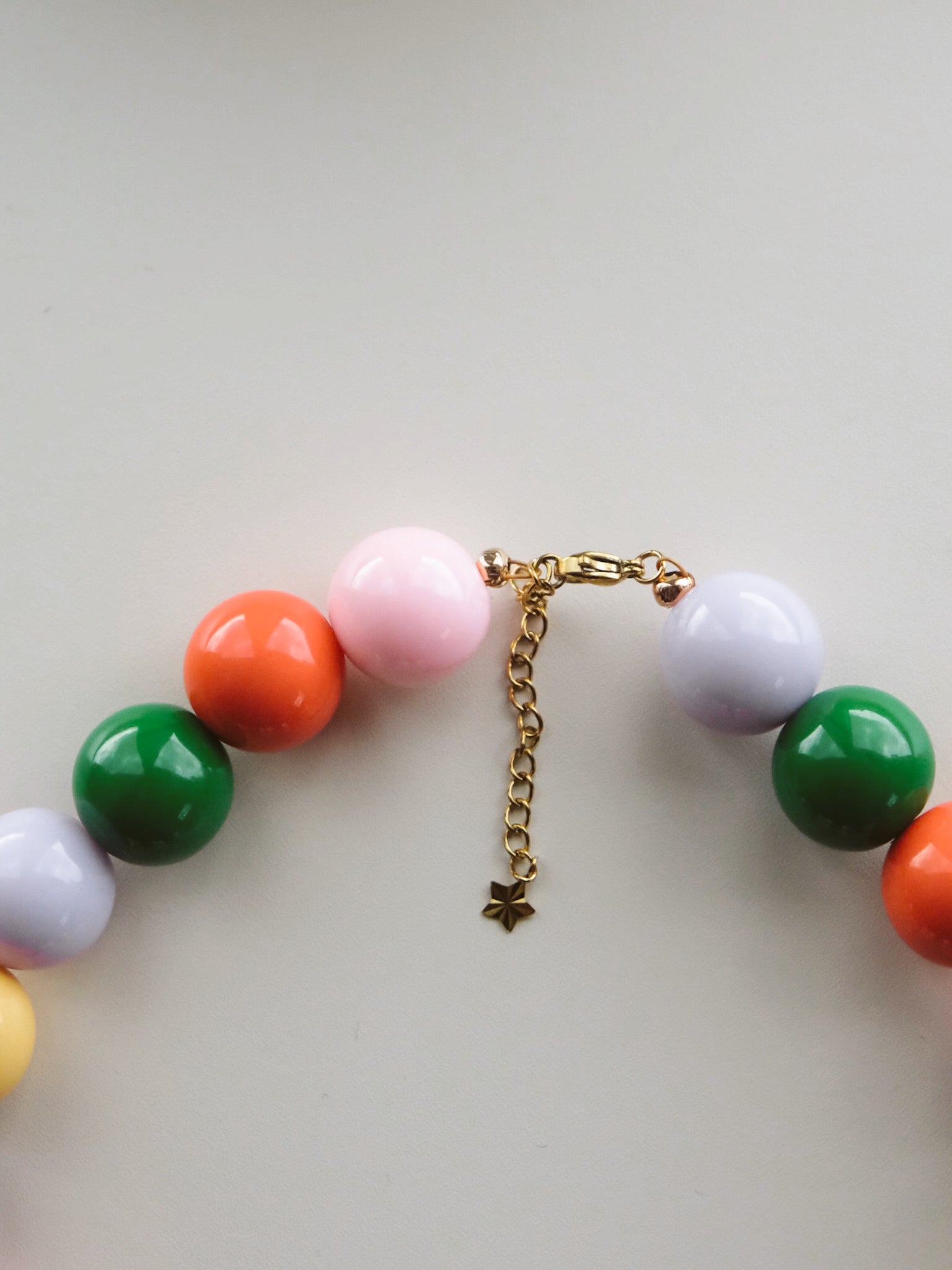 Handgemaakte ketting met kralen, afgewerkt met een gouden sluiting. Gemaakt van RVS/stainless steel, waardoor de ketting niet verkleurt.