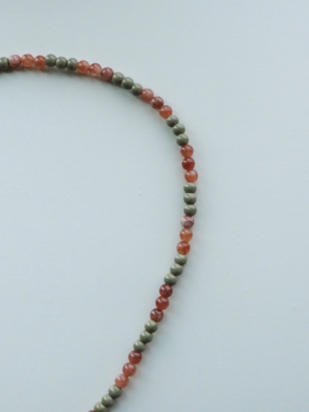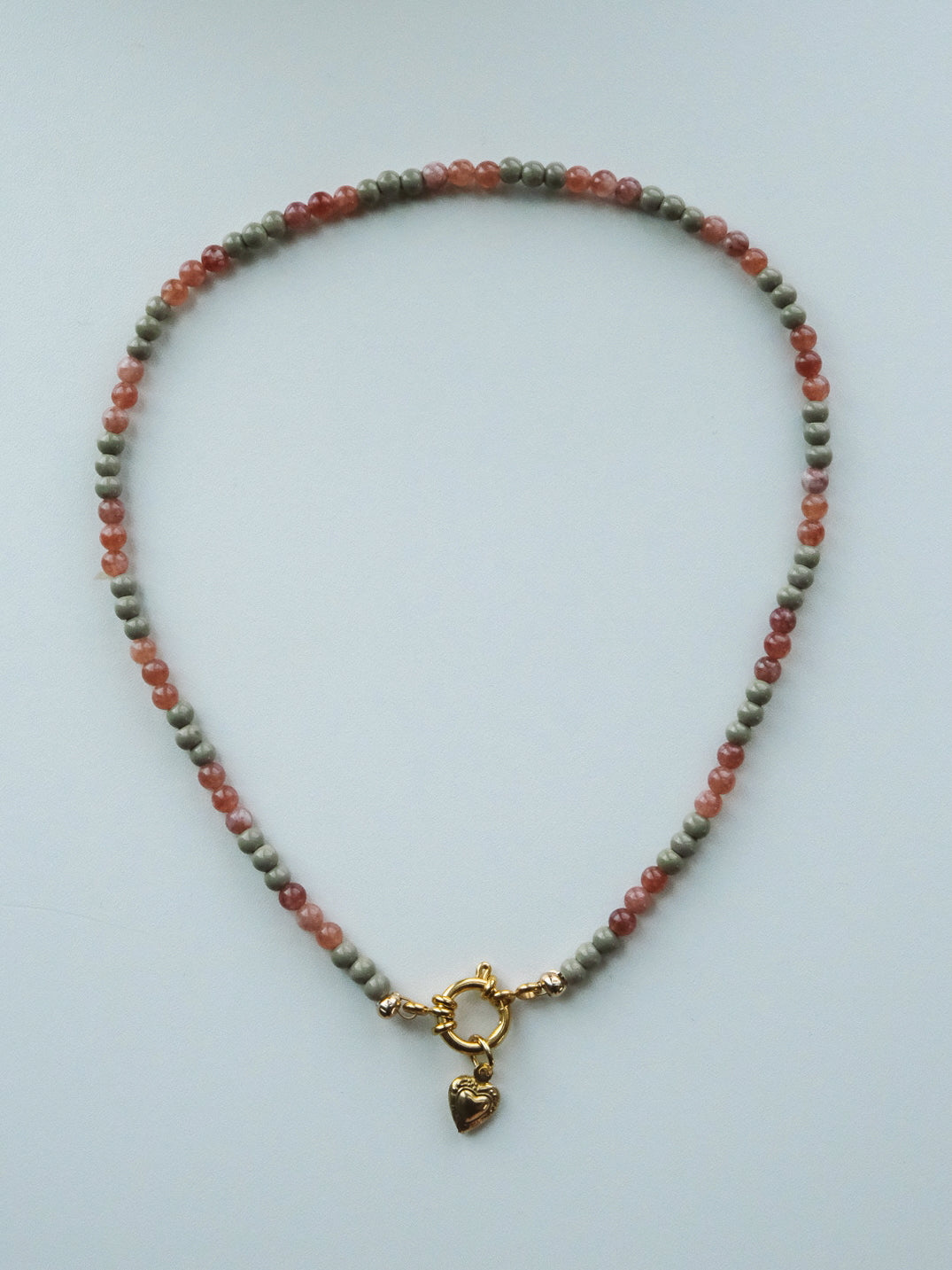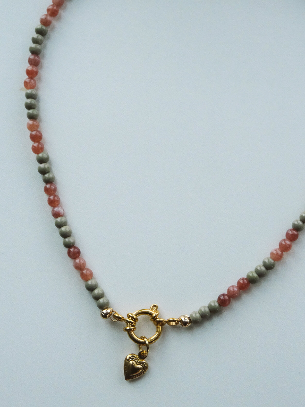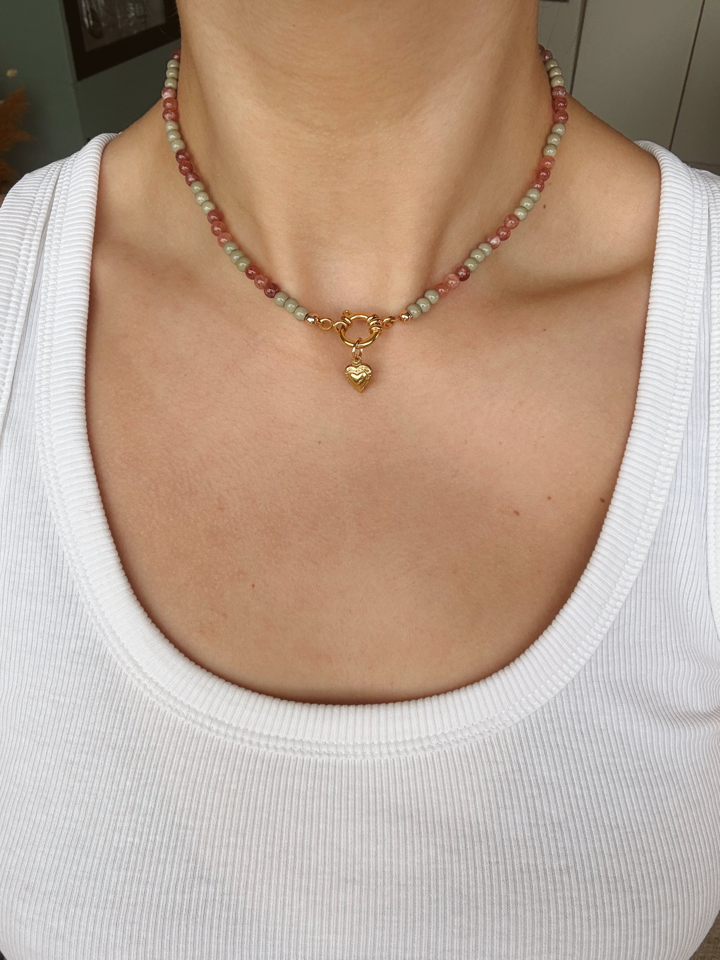 Handgemaakte ketting met natuursteen kralen, afgewerkt met een gouden hanger. Gemaakt van RVS/stainless steel, waardoor de ketting niet verkleurt.