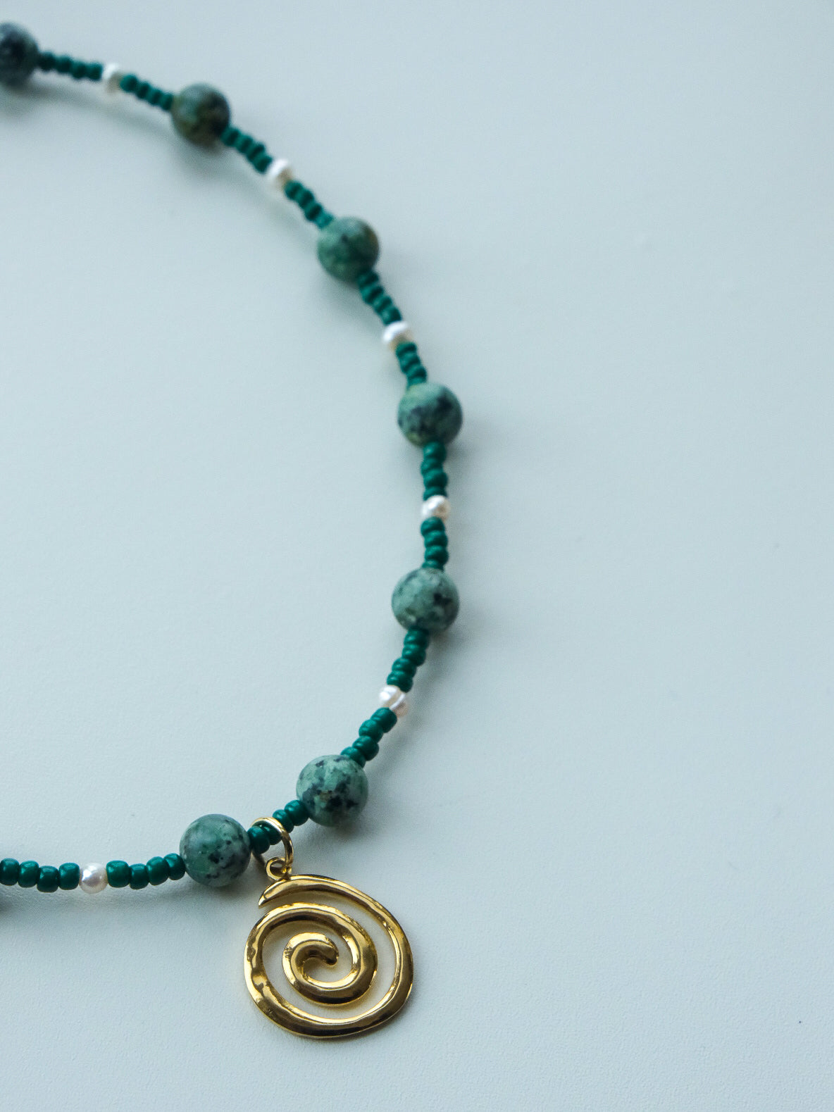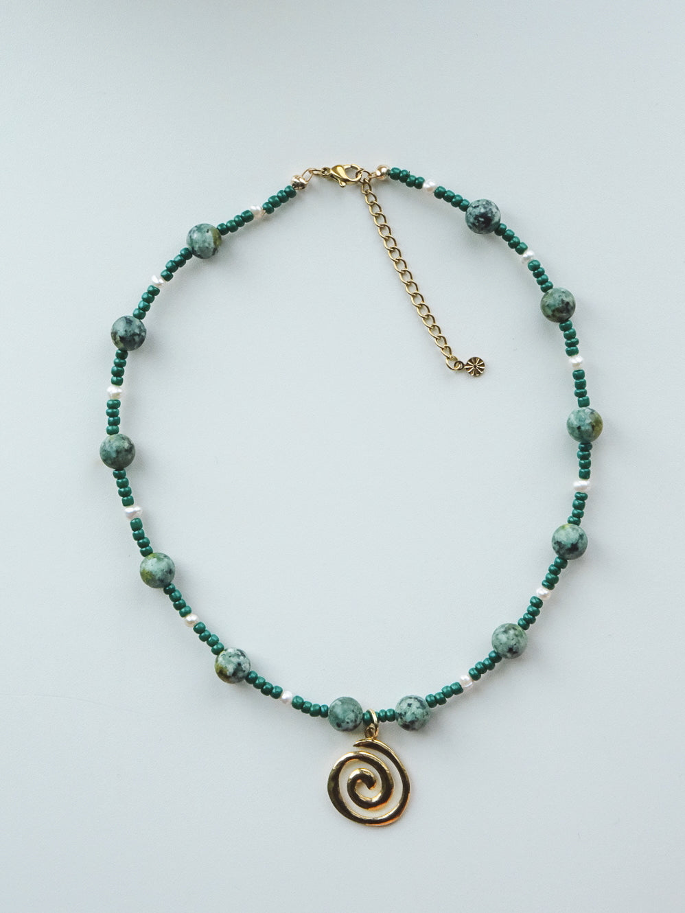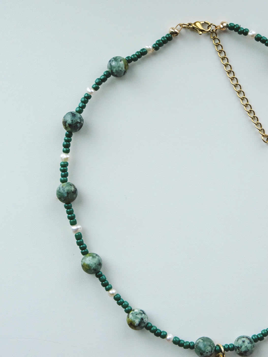 Handgemaakte ketting met natuursteen kralen, afgewerkt met een gouden sluiting. Gemaakt van RVS/stainless steel, waardoor de ketting niet verkleurt.
