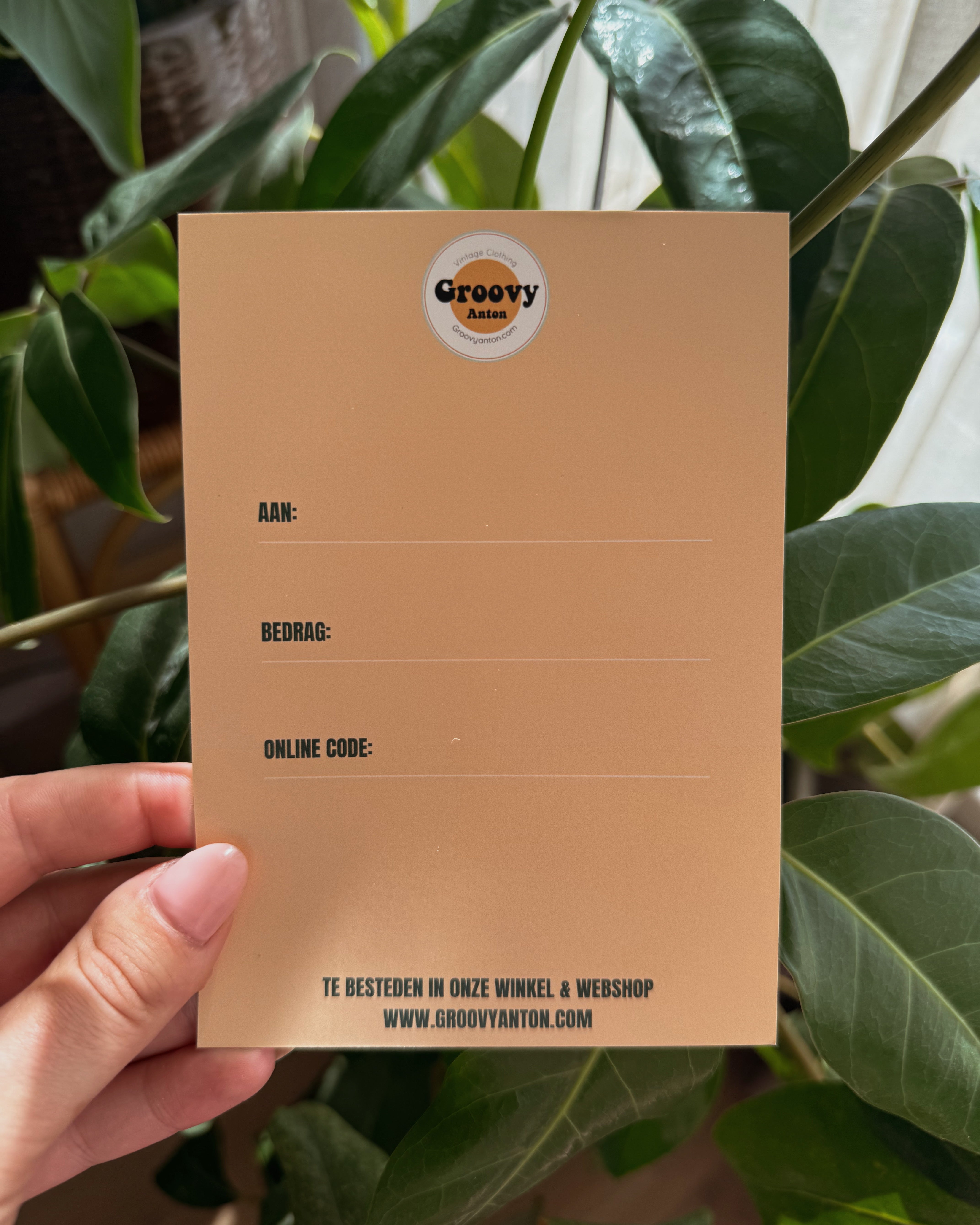 Het perfecte cadeau voor alle vintage lovers! Te gebruiken in onze winkel in Enschede. Haal je fysieke cadeaubon op in de winkel of laat de code naar het opgegeven mail adres sturen!